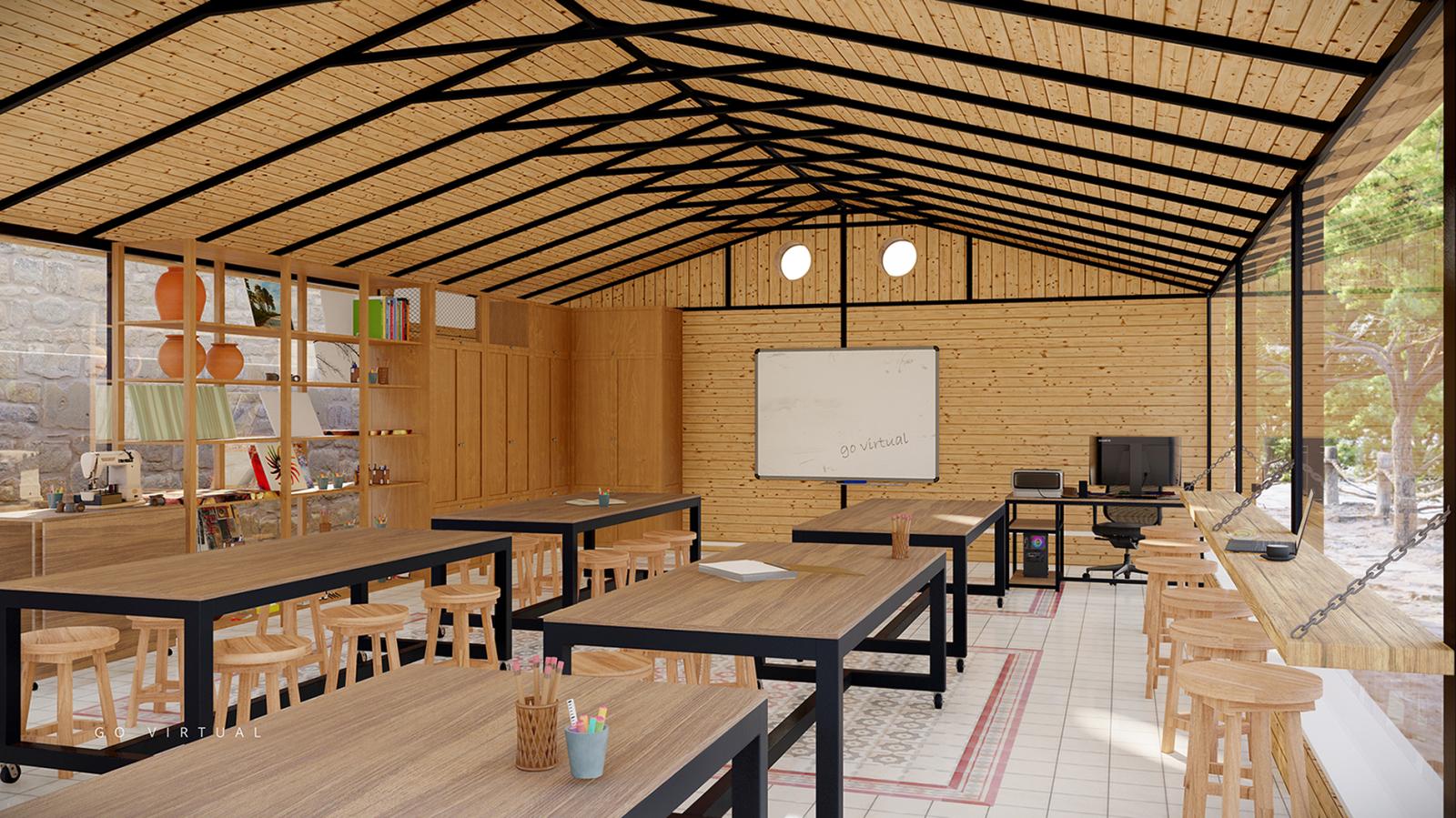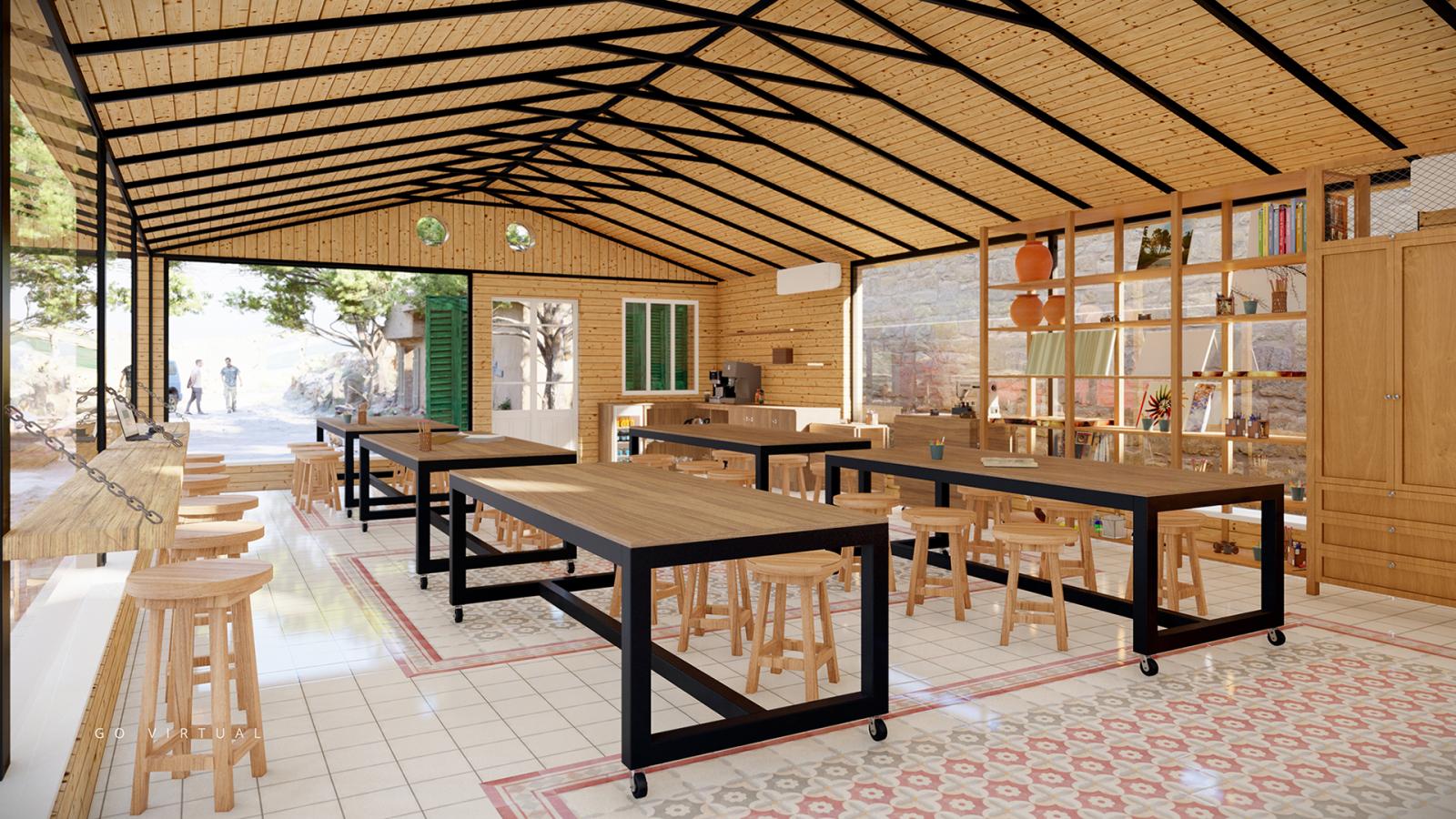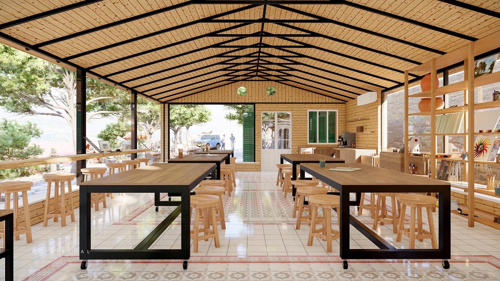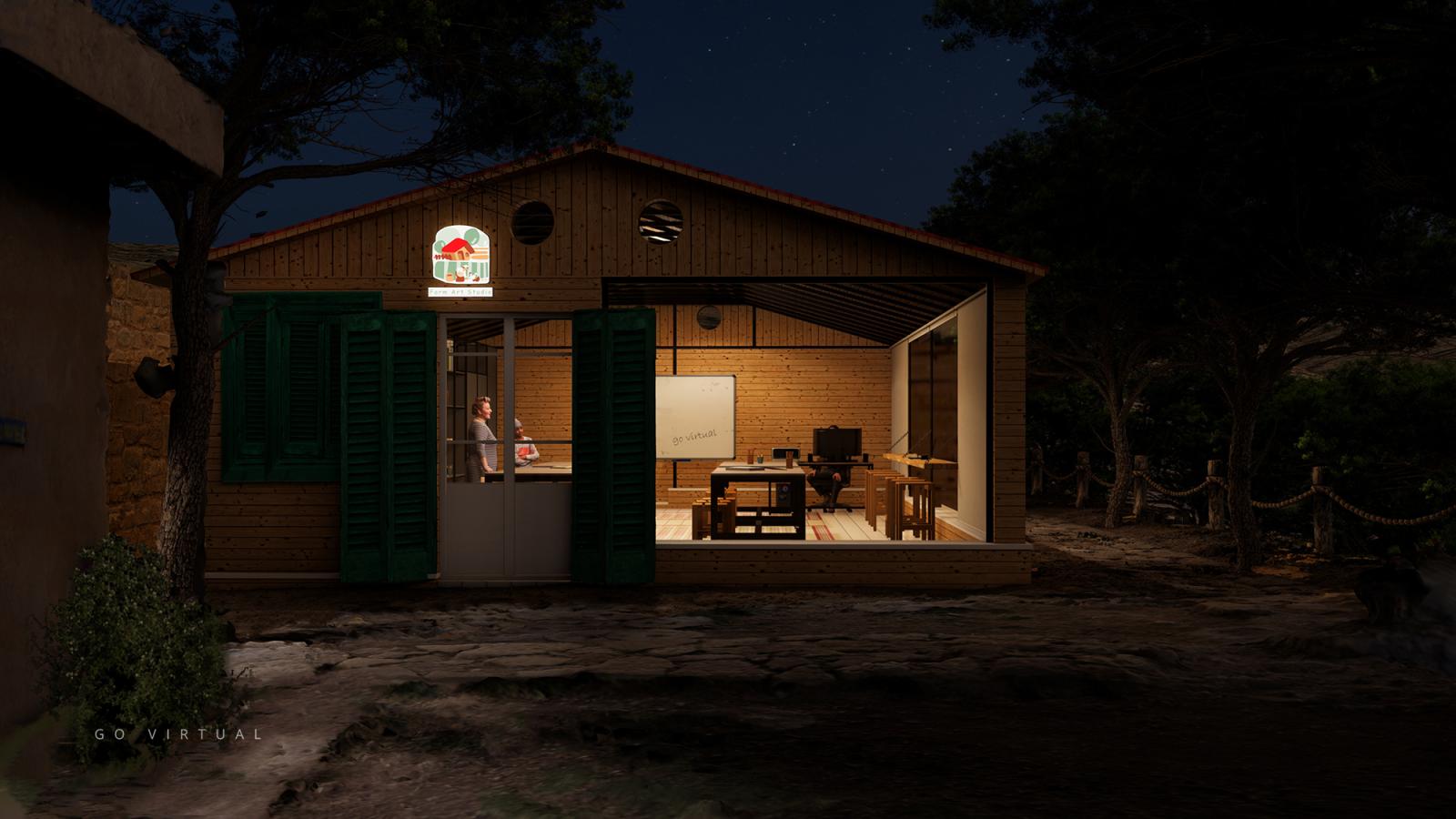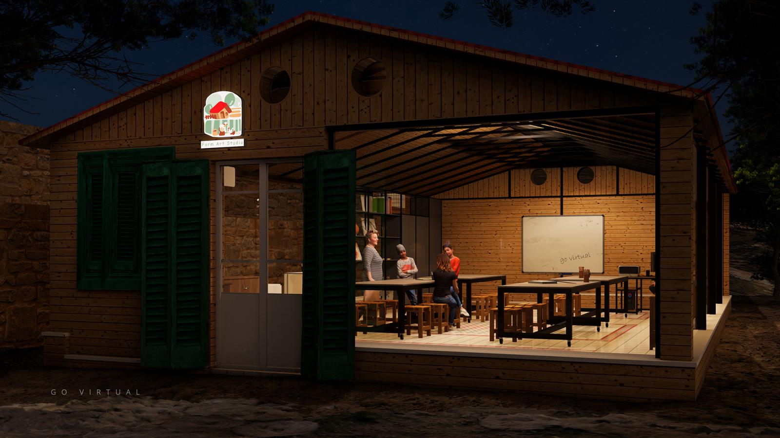 A cozy and creative rural workspace envisioned as a farm-based art studio. Designed to inspire, the space blends rustic textures with artistic elements to create a haven for focus and imagination. Natural light filters through large windows, illuminating handcrafted decor and wooden furnishings that echo the charm of countryside life. This project emphasizes tranquility, simplicity, and a grounded connection to nature — ideal for artists seeking inspiration in a peaceful setting.